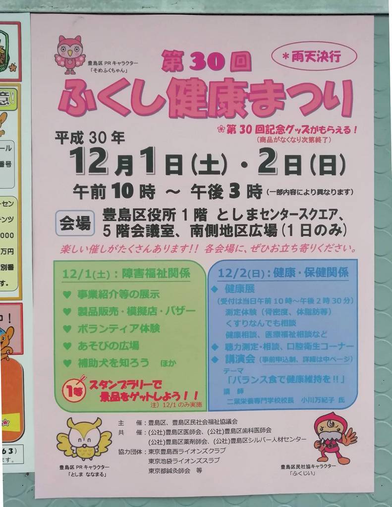 12月1・2日に豊島区役所1階のとしまセンタースクエアなどで「第30回ふくし健康まつり」が開催される。