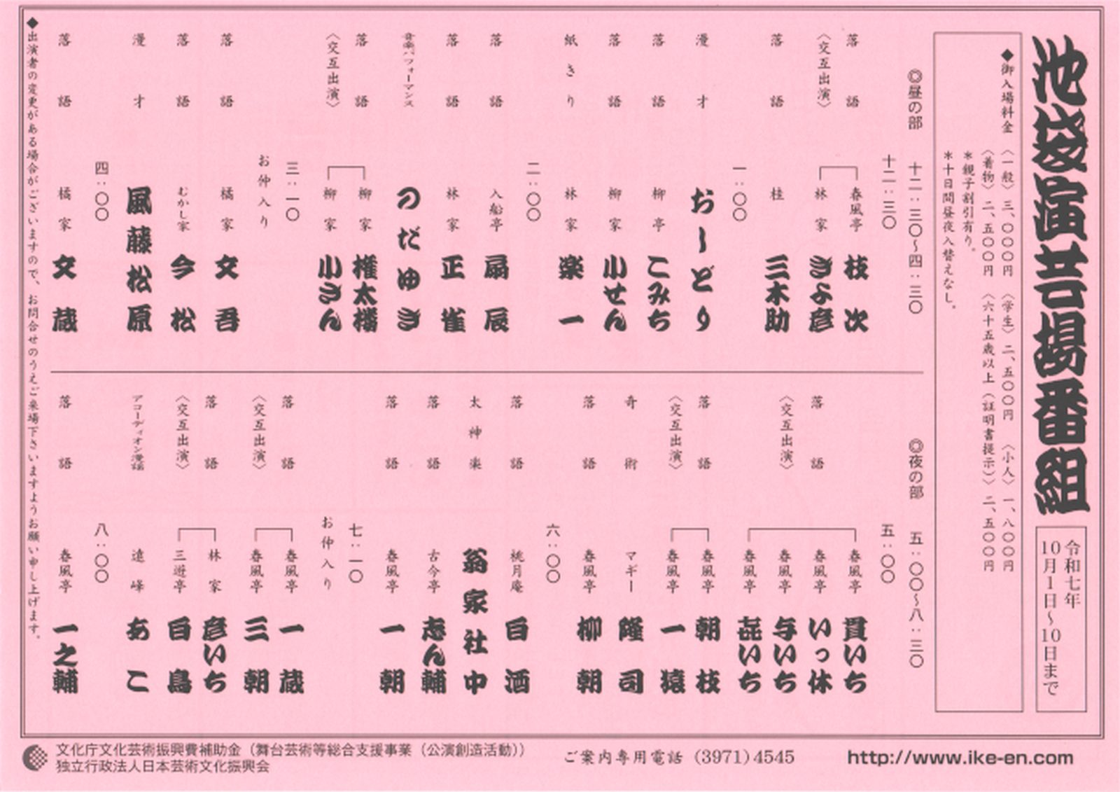 ■落語協会 https://www.rakugo-kyokai.jp/joseki/ikebukuro
