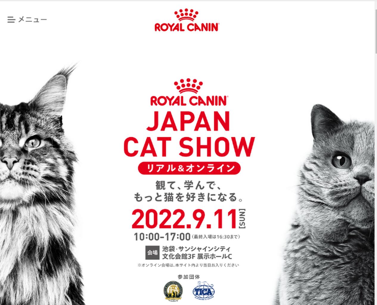 9月11日にサンシャインシティ展示ホールCで「JAPAN CAT SHOW」が開催される。日本最大級規模の猫の品評会イベント、猫の品種の基準、コンディション、美しさなどを審査する品評会。