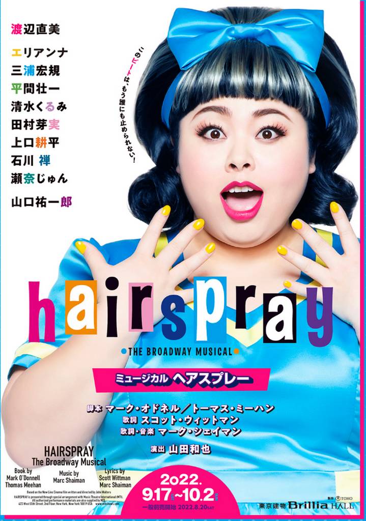 主演・トレイシー役は渡辺直美さん、母親・エドナ役は山口祐一郎さん、三浦宏規さん、平間壮一 さん、清水くるみさん、 田村芽実さんなど。 演出は山田和也さん。