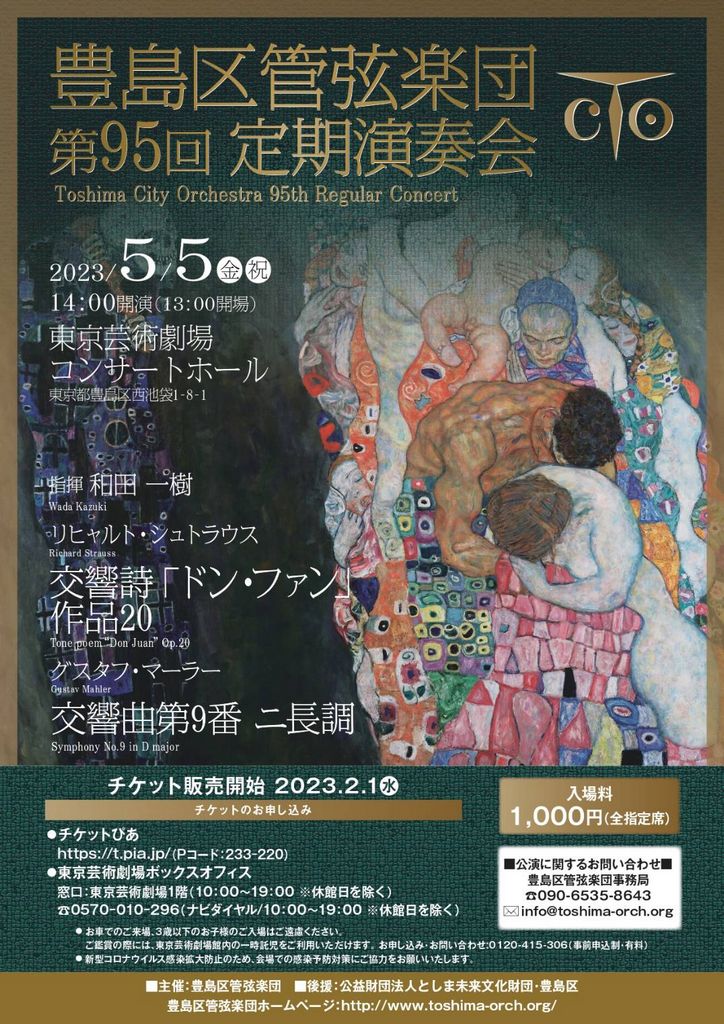 5日午後2時から「豊島区管弦楽団」の第95回定期演奏会で、演奏曲はR.シュトラウス の交響詩「ドン・ファン」とマーラー の「交響曲第9番」で指揮は和田一樹さん。マーラーの9番は演奏時間が70分を超える大曲。入場料1,000円(全席指定)