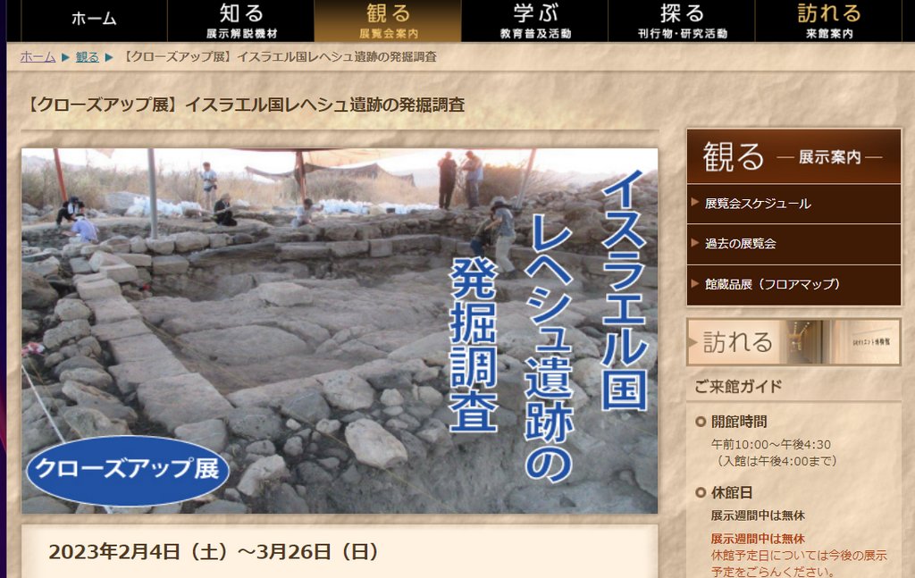 サンシャインシティの文化会館7階に「古代オリエント博物館」がある。そこでいま【クローズアップ展】として『イスラエル国レヘシュ遺跡の発掘調査』についての展示( 2月4日〜3月26日)が行われている。