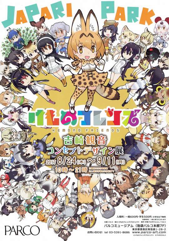 8月24日の午後、池袋パルコの6階から7階の階段に行列ができているので、何事かと行列の先を見ると「パルコミュージアム」だった。パルコミュージアムの『けものフレンズ 吉崎観音コンセプトデザイン展』の初日に駆けつけた人達の行列だった。行列には若い男女たちが多かった。「けものフレンズ」は、けものフレンズプロジェクトによるメディアミックス作品で、アプリゲーム・コミック・テレビアニメ、グッズ等などで展開されている。展覧会は9月11日まで。