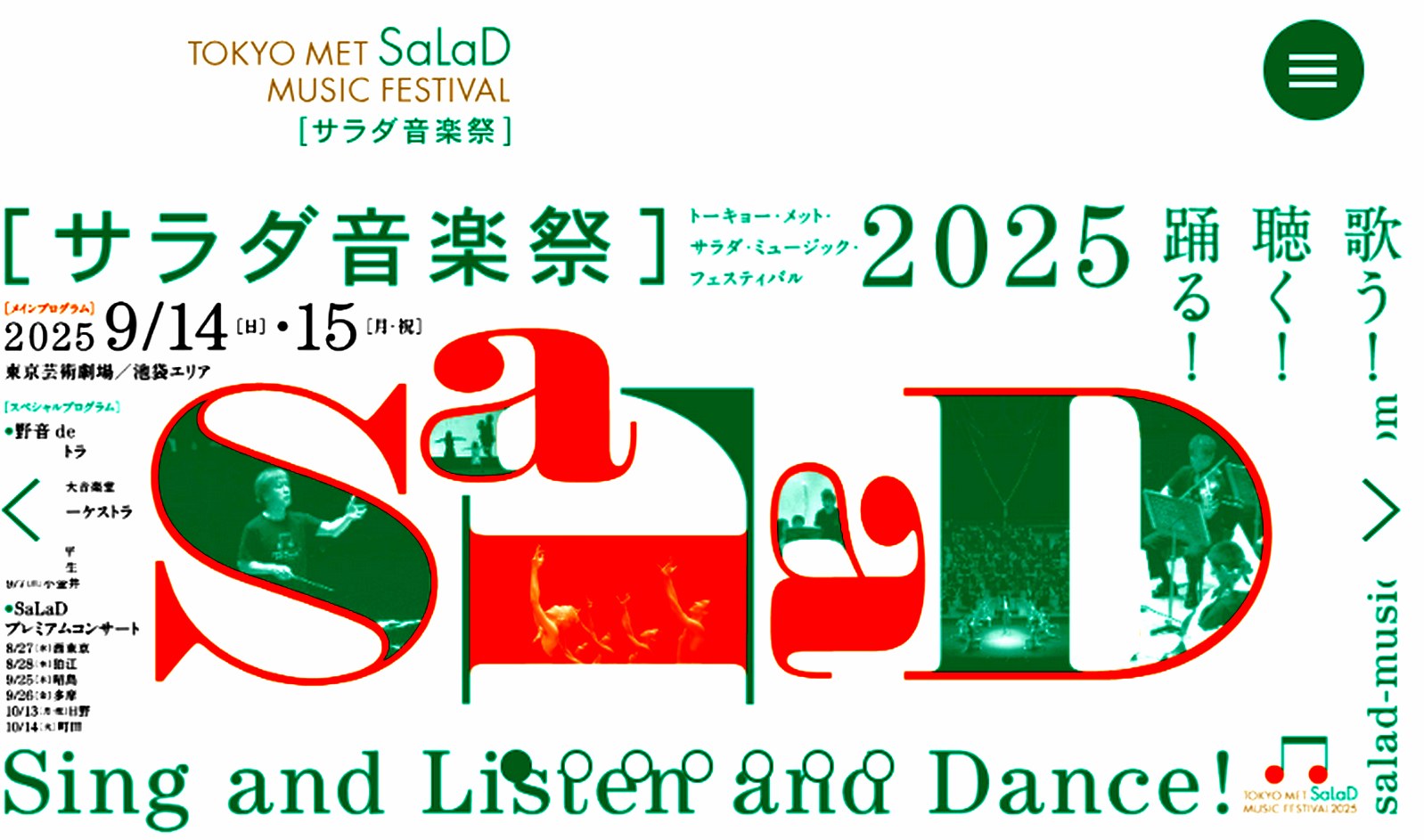 東京芸術劇場で9月14・15日に[サラダ音楽祭]のメインプログラムのコンサート・ミュージカルなどが開催される。