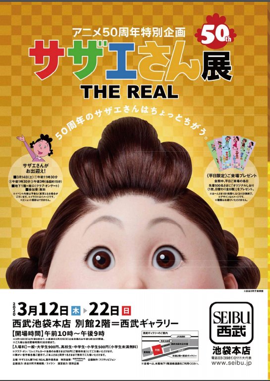 ■西武池袋「サザエさん展 」 https://www.sogo-seibu.jp/ikebukuro/topics/page/1430029.html