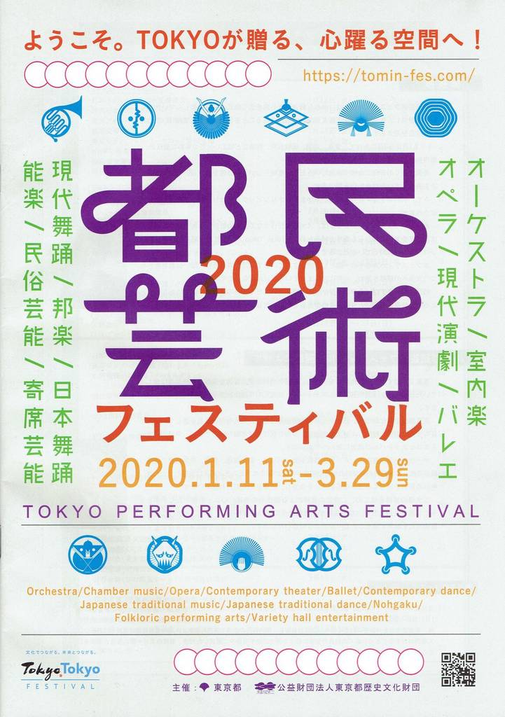 「都民芸術フェスティバル」が1月11日から3月末まで、オーケストラ、室内楽、オペラ、現代演劇、バレエ、現代舞踊、邦楽、日本舞踊、能楽、民俗芸能、寄席芸能の全11分野の公演が都内各地で行われる。このフェスは1968(昭和43)年から開催されていて今年で52回目となる、東京都の文化事業で舞台芸術や芸能など文化団体への支援などで料金が低く設定されている。